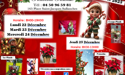 Venez choisir votre composition de centres de tables pour Noël : bouquet, sapin, poinsettia, hellébore chez votre fleuriste à Sallanches